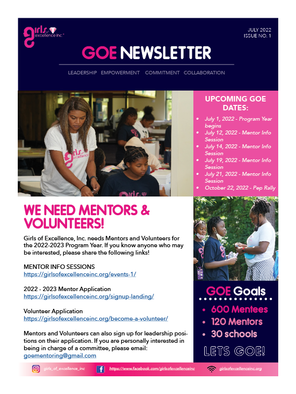Girls of Excellence, Inc is a nonprofit organization providing supportive services for age 8-18 in grades 3-12. Click here to see their website!